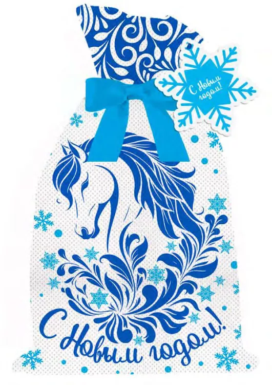 Мешочек подарочный "Лошадка" 20х30см, цв.голубой