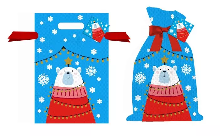 Мешочек подарочный "Новогодний мишка" 20х30см цв.синий