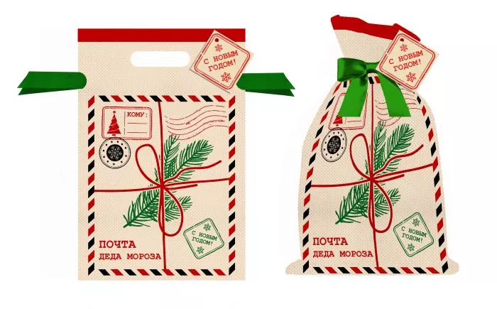 Мешочек подарочный "Новогодний подарок" 30х45см цв.бежевый