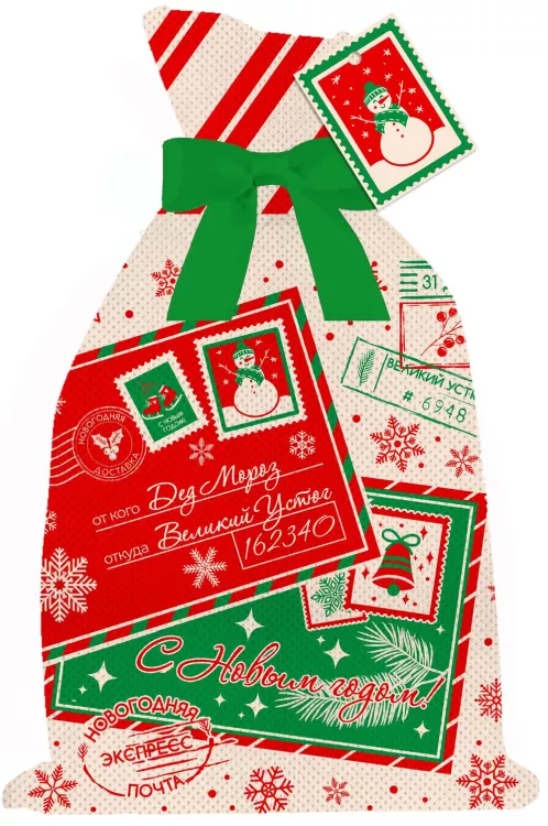 Мешочек подарочный "Новогодняя почта" 20х30см