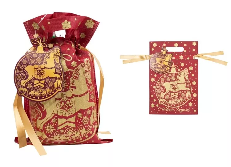 Мешочек подарочный "С новым годом!" 20х30см цв.бордо