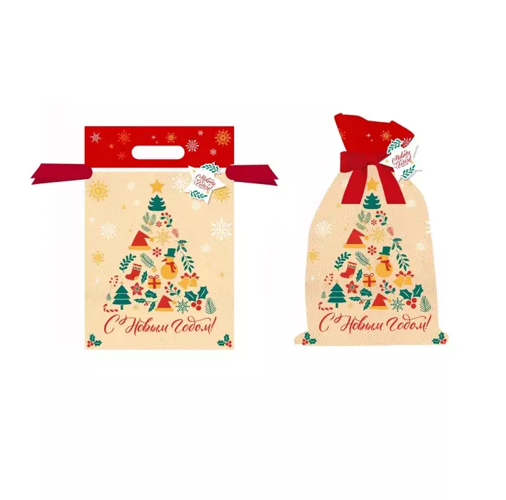 Мешочек подарочный "С новым годом!" 40х56см цв.бежевый