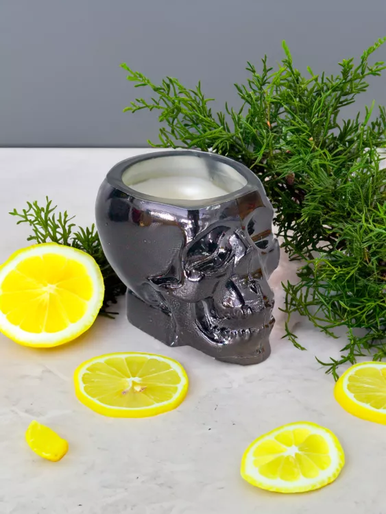 "Metallic" Свеча-череп "Джин-тоник" 7,5х6см