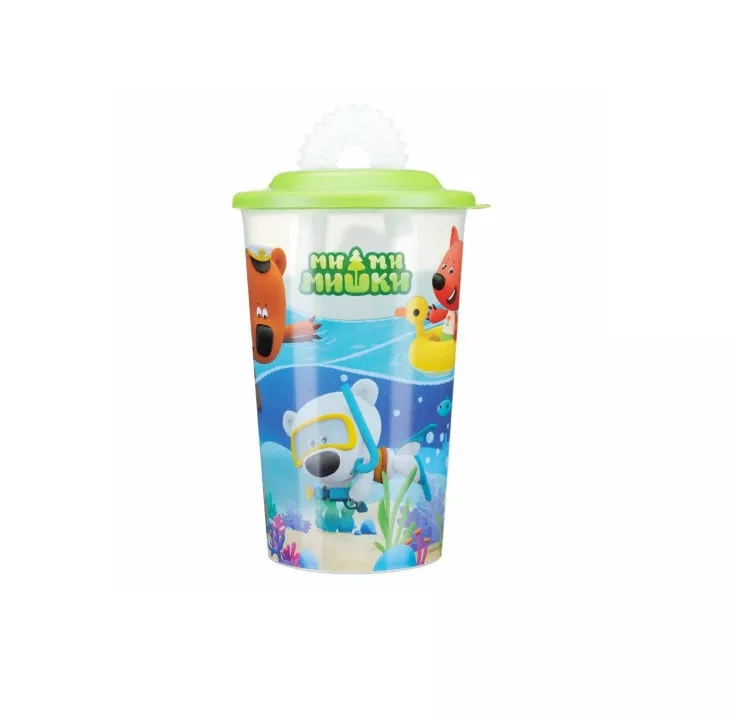 "Ми-ми-мишки" Стакан 400мл с трубочкой, цв.зеленый