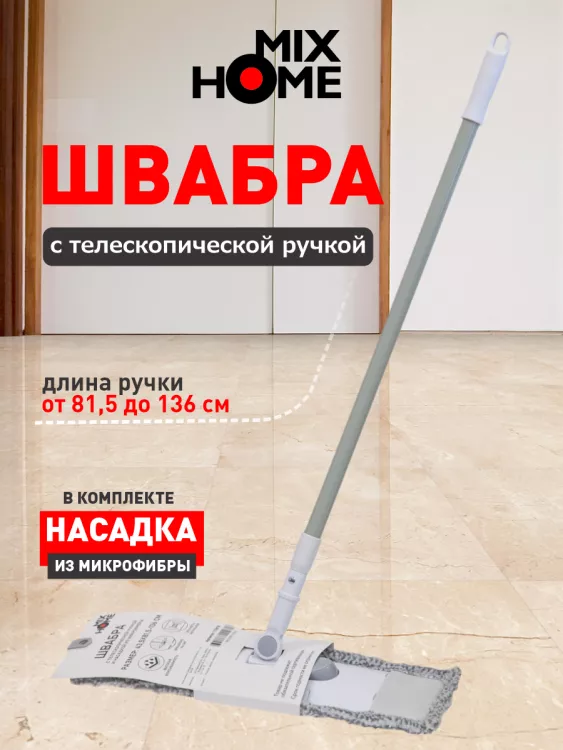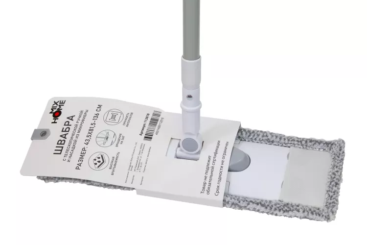 "Mix Home" Швабра с насадкой из микрофибры, телескопическая ручка 43,5х81,5-136см