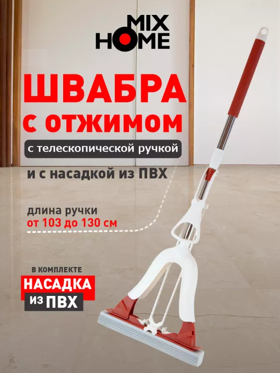 "Mix Home" Швабра с отжимом и насадкой из ПВХ, телескопическая ручка 33х103-130см