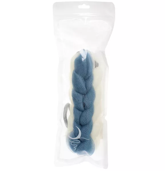 Мочалка для тела "Premium-Fergamo" 26х6см, цв.белый/лазурный