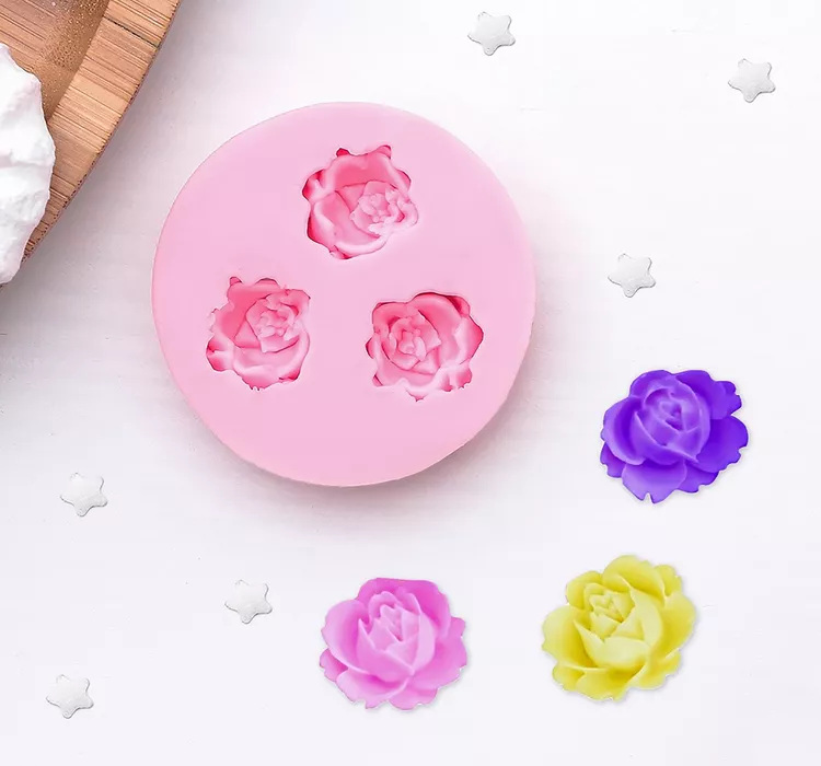 Молд силиконовый "Три малых розы" 4,5см цв.ассорт