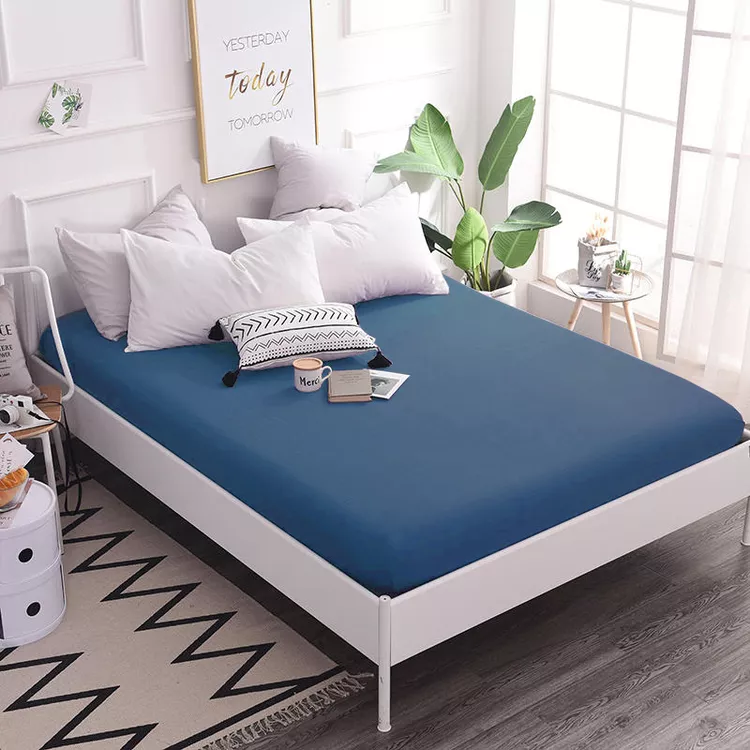 "Mona Liza" Простынь на резинке 160х200х25см, цв.синий, сатин