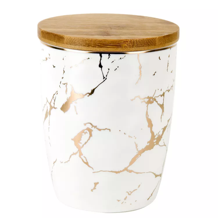 "Мрамор" Банка для сыпучих продуктов с бамбуковой крышкой 10х12,5см цв.белый