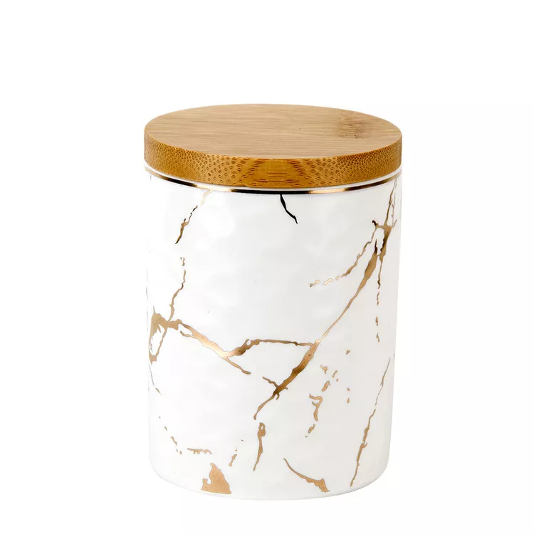 "Мрамор" Банка для сыпучих продуктов с бамбуковой крышкой 200мл цв.белый