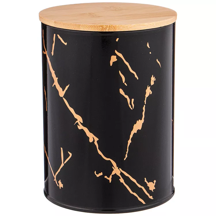 "Мрамор" Банка для сыпучих продуктов с бамбуковой крышкой 7х9,5см цв.черный
