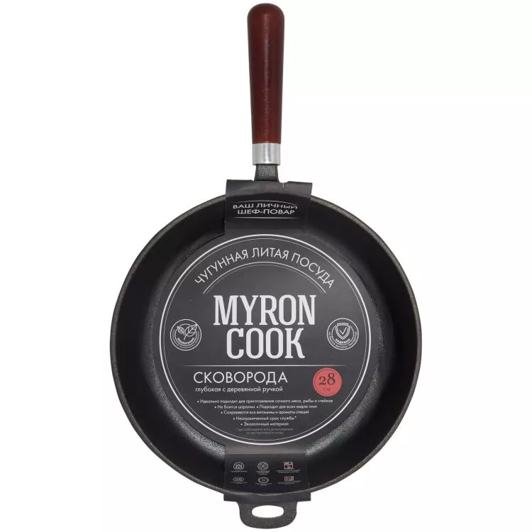 "MYRON COOK" Сковорода чугунная 28 см глубокая h 6см, дерев.ручка