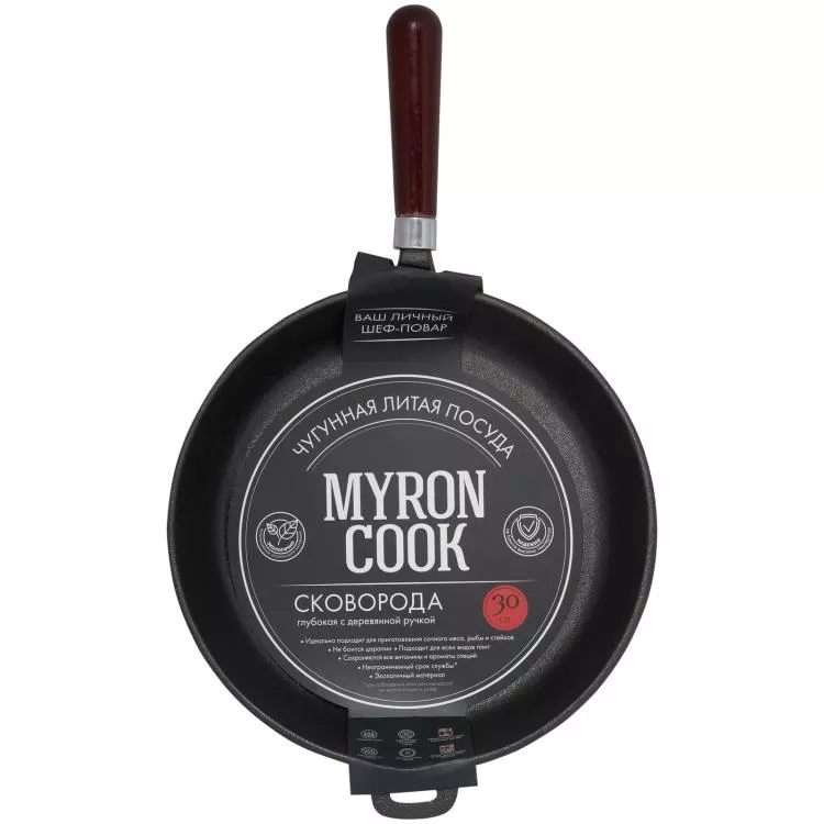 "MYRON COOK" Сковорода чугунная 30см глубокая h 6,5см, дерев.ручка