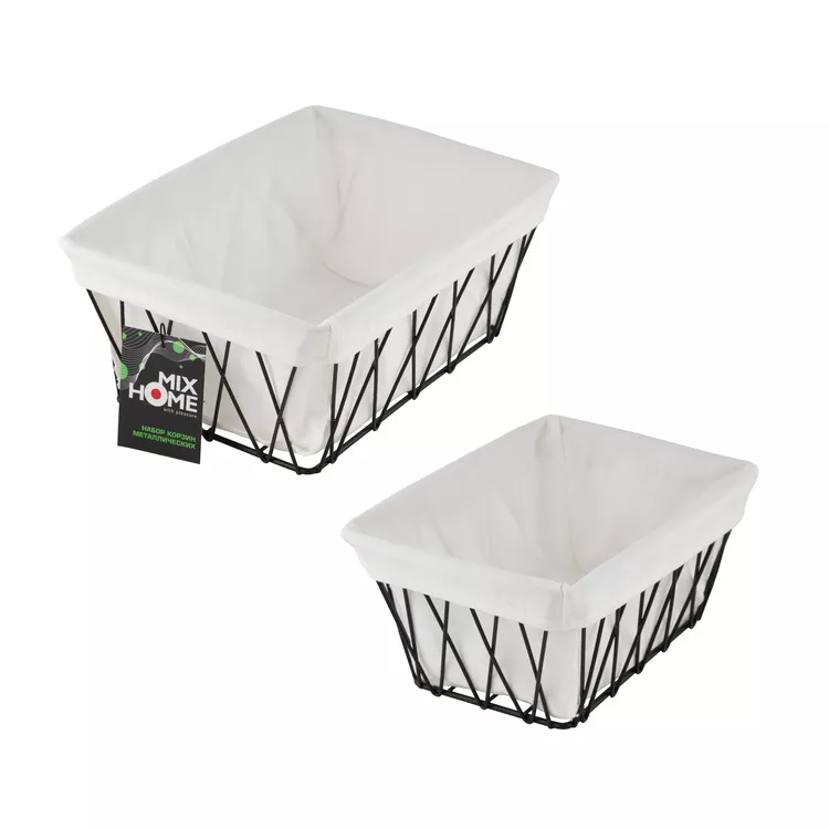 Н-р корзин металлических с текстильной вставкой 2шт, 25х18х11см; 20х15х10см, цв.черный