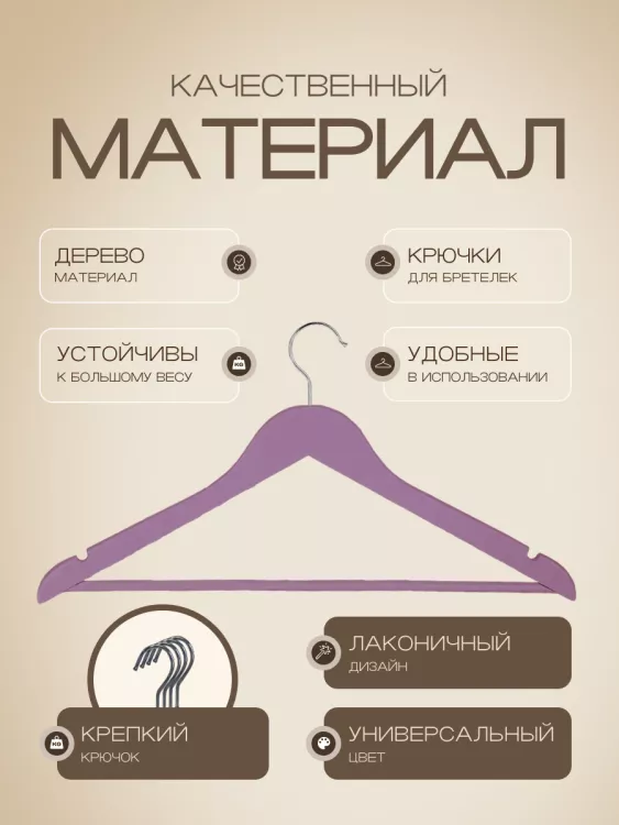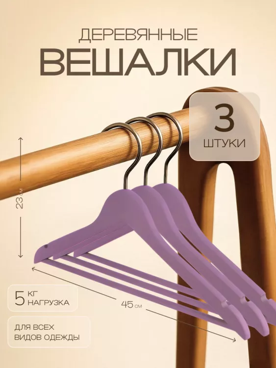 Н-р вешалок деревянные 3шт, 45х23см, цв.светло-розовый
