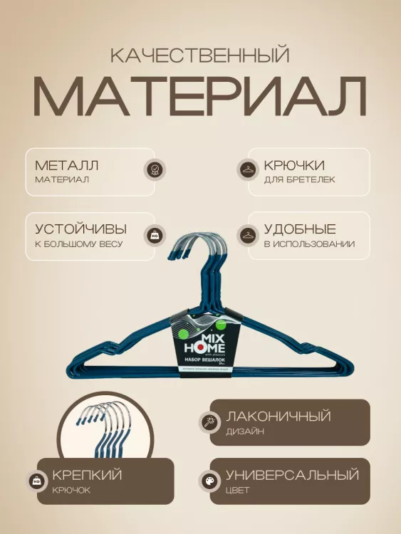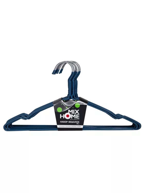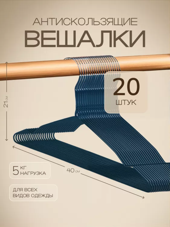 Н-р вешалок металл. с антискользящим покрытием 20шт, 40х21см, цв.темно-синий