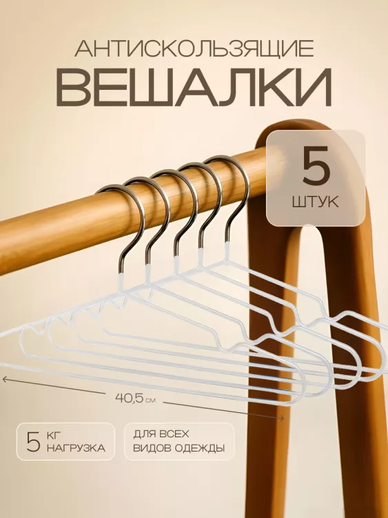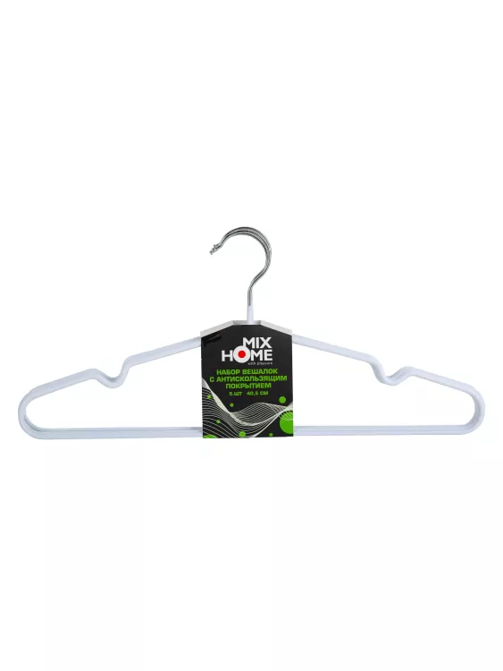 Н-р вешалок металл. с антискользящим покрытием 5шт. 40,5см, цв. белый