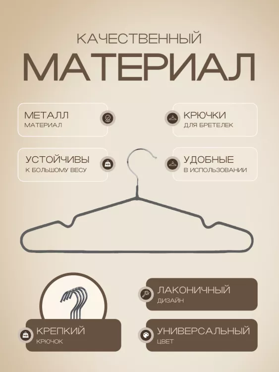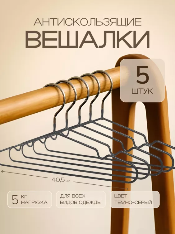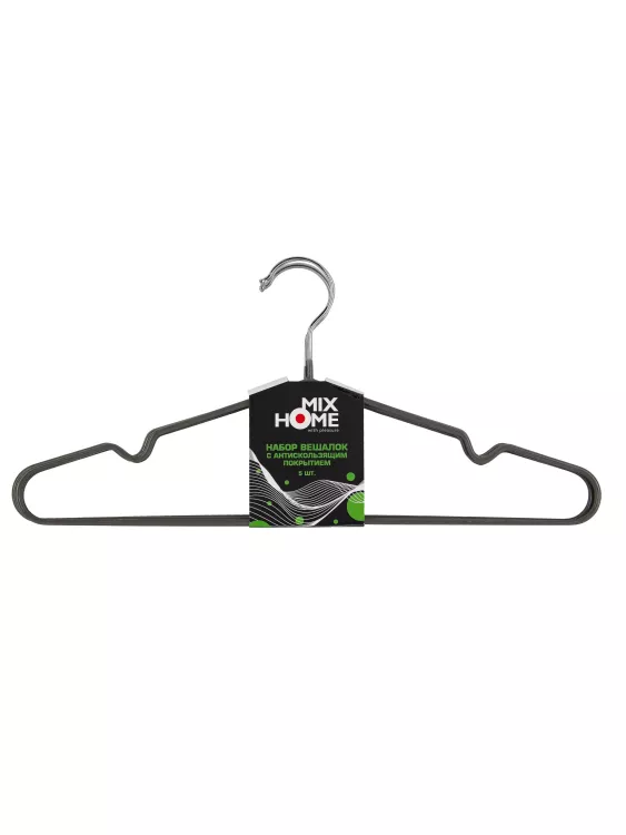 Н-р вешалок металл. с антискользящим покрытием 5шт. 40,5см, цв.темно-серый