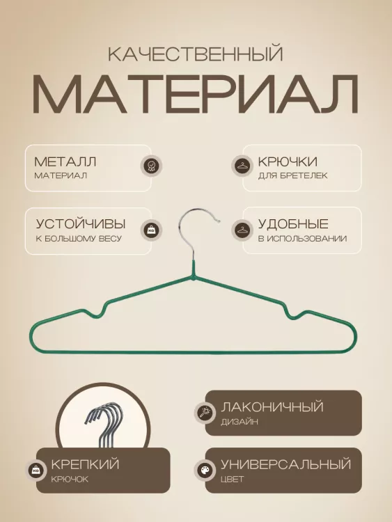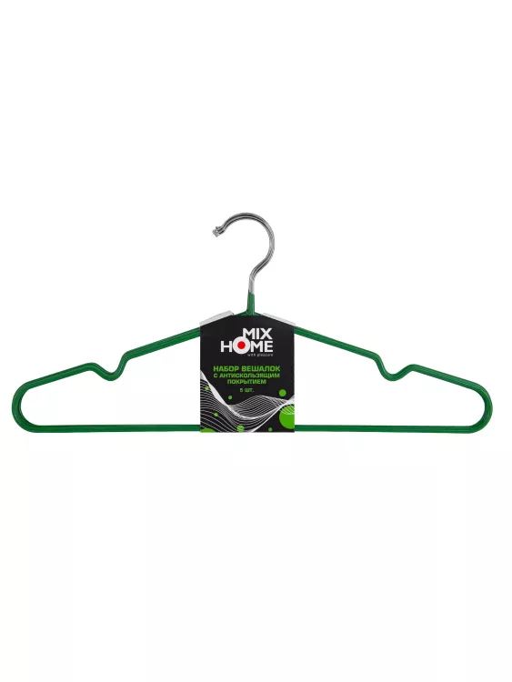 Н-р вешалок металл. с антискользящим покрытием 5шт. 40,5см, цв. зеленый