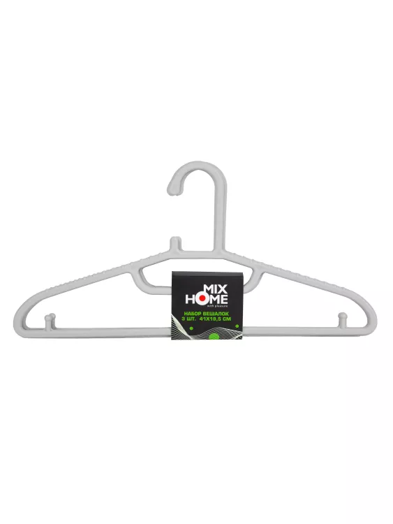 Н-р вешалок пластик. 41х19,5см, 3шт., цв.серый