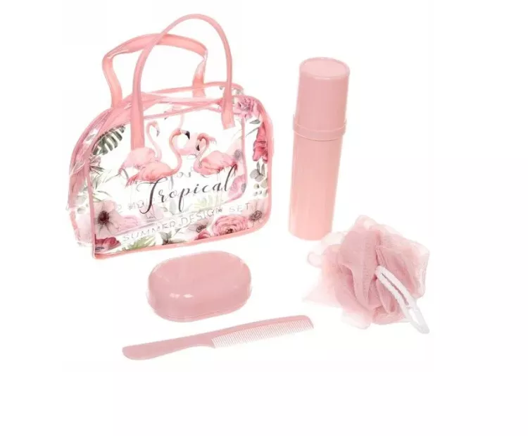 Набор банный дорожный "Traveler.Фламинго" 4пр.,цв.розовый