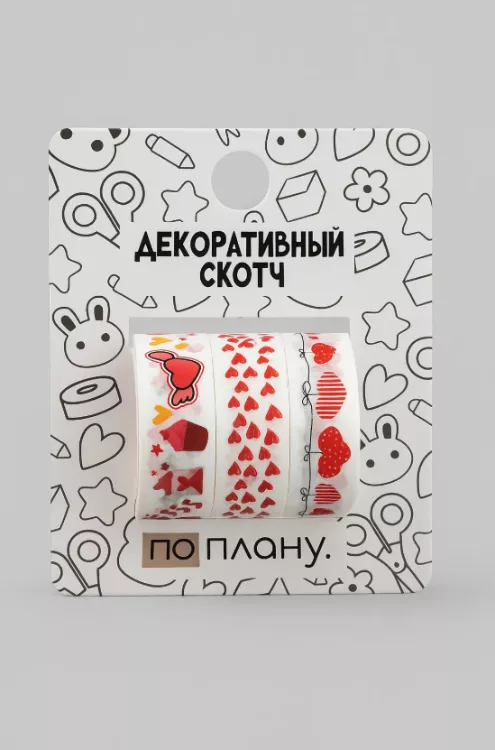 Набор декоративного скотча "Spring love" 3шт. 1,5смх2м, цв.бело-красный