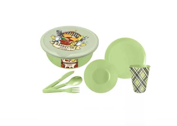 Набор для пикника "Barbecue party" 4 персоны, 25 пр. цв.салатовый