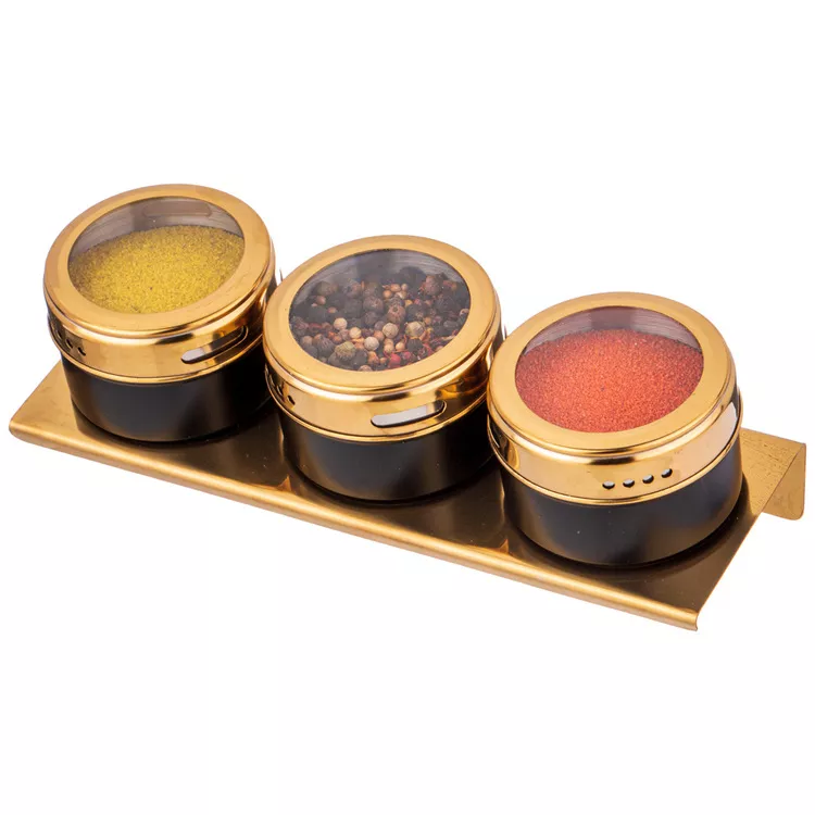 Набор для специй на магнитах 4пр. с подставкой "Черное золото" 20x6x5см