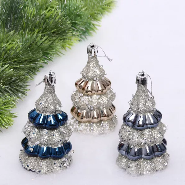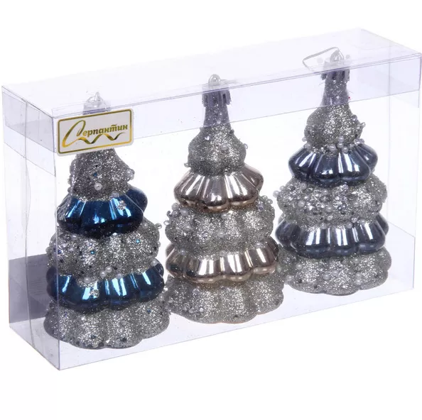 Набор елочных украшений "Magic tree" 6х10см, 3шт, цв.синий/серебро/серый