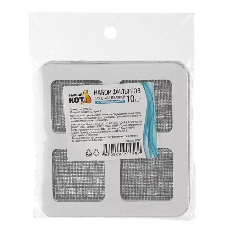 Набор фильтров для слива, самоклеящихся 10х10см, 10шт.