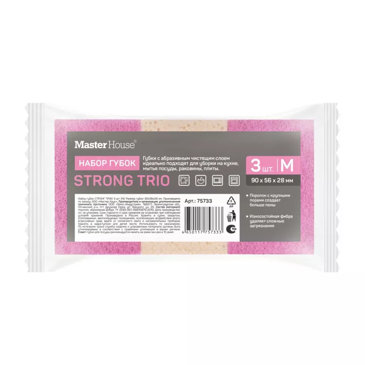 Набор губок для мытья посуды "Стронг Трио" 3шт. 9х5,6х2,8см
