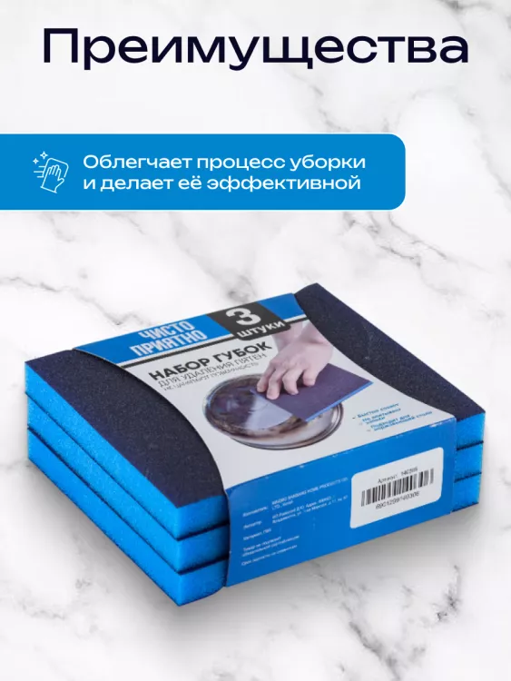 Набор губок для уборки – незаменимый помощник в вашем доме или офисе. Многофункциональные и эффективные, они подходят для использования на кухне и в ванной комнате, обеспечивая безупречную чистоту и гигиену в любом помещении. Губки оснащены абразивным сло...