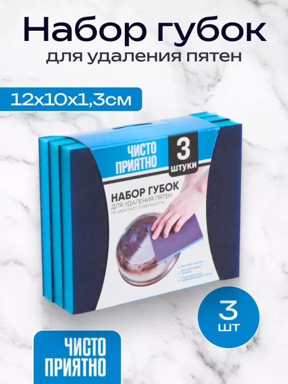 Набор губок для удаления пятен 3шт, 12х10х1,3см