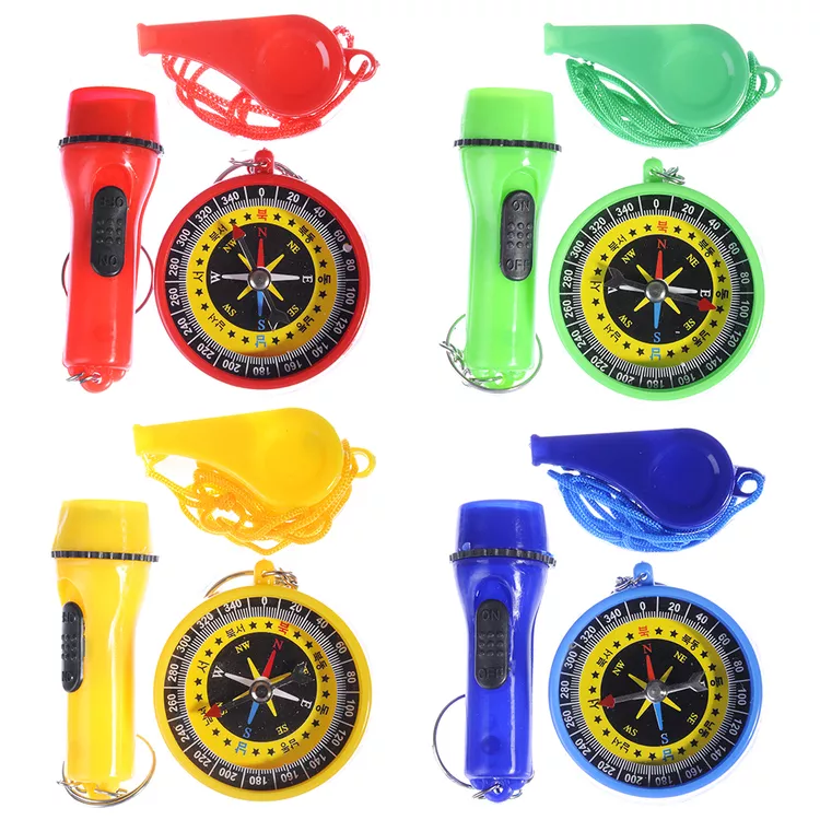 Игровой набор, состоящий из компаса, фонарика и свистка, разнообразит игры вашего малыша, но и помогут вам в обучении ребенка, используя игрушки вы можете окунуться в мир путешествий и загадок.
