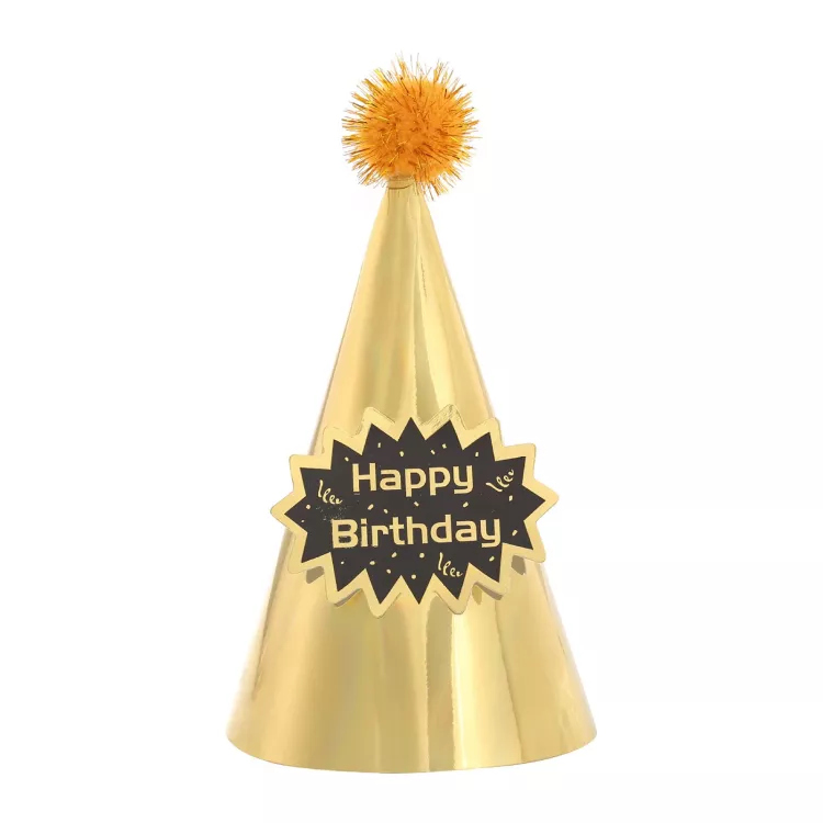 Набор колпаков "Happy Birthday" 3шт., цв.золотой