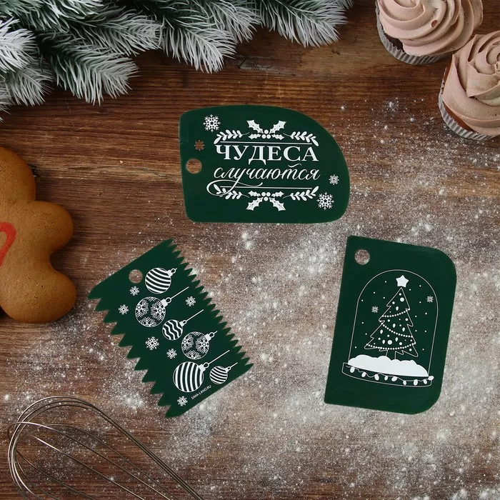 Набор кондитерских шпателей "Чудеса случаются" 3шт, цв.зеленый