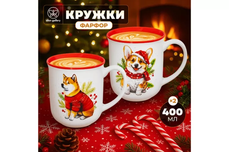 Набор кружек "Зимние собачки" 400мл 2шт.