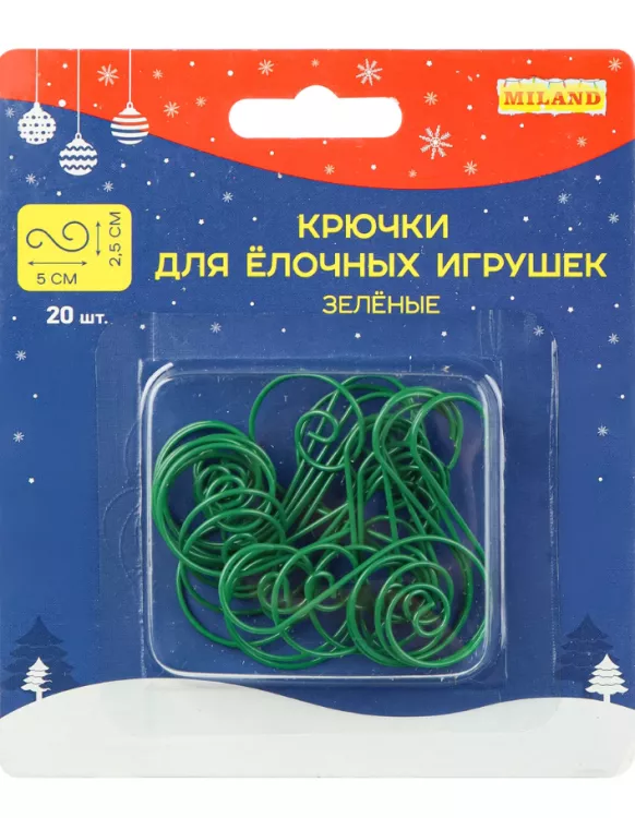 Набор крючков 20шт 5х2,5см, цв.зеленый