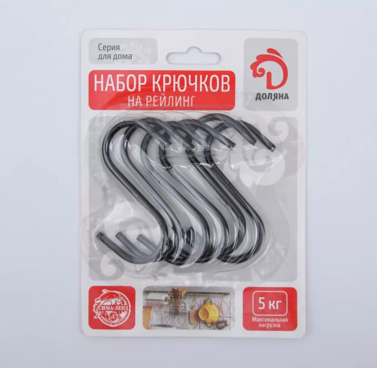 Набор крючков 6шт, 7х2,2см, цв.черный