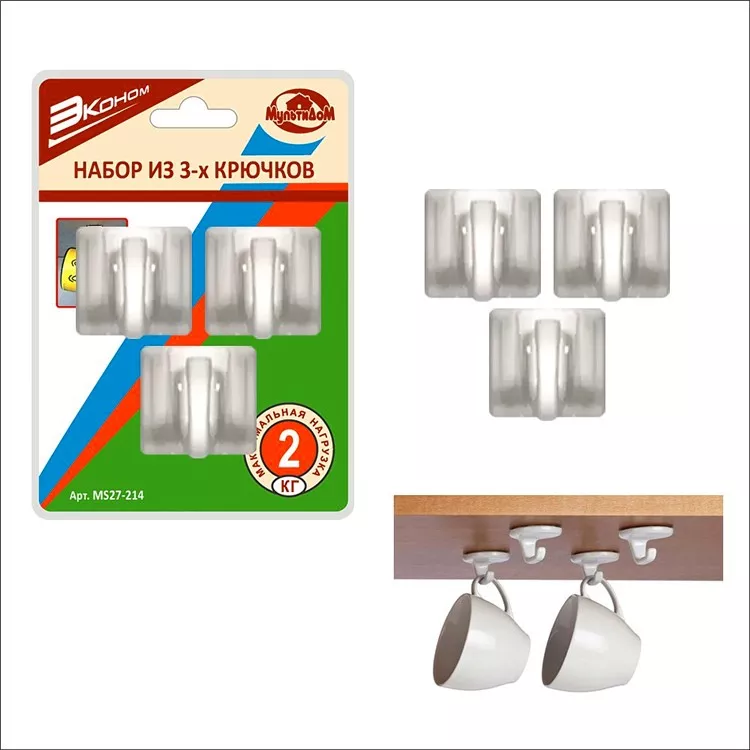 "Park" Набор крючков с системой бесследного удаления 3шт. 2,5х4,5см, цв.белый