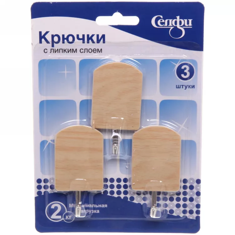 Набор крючков "ИдеяДома" прямоугольник 3шт., цв.светлое дерево