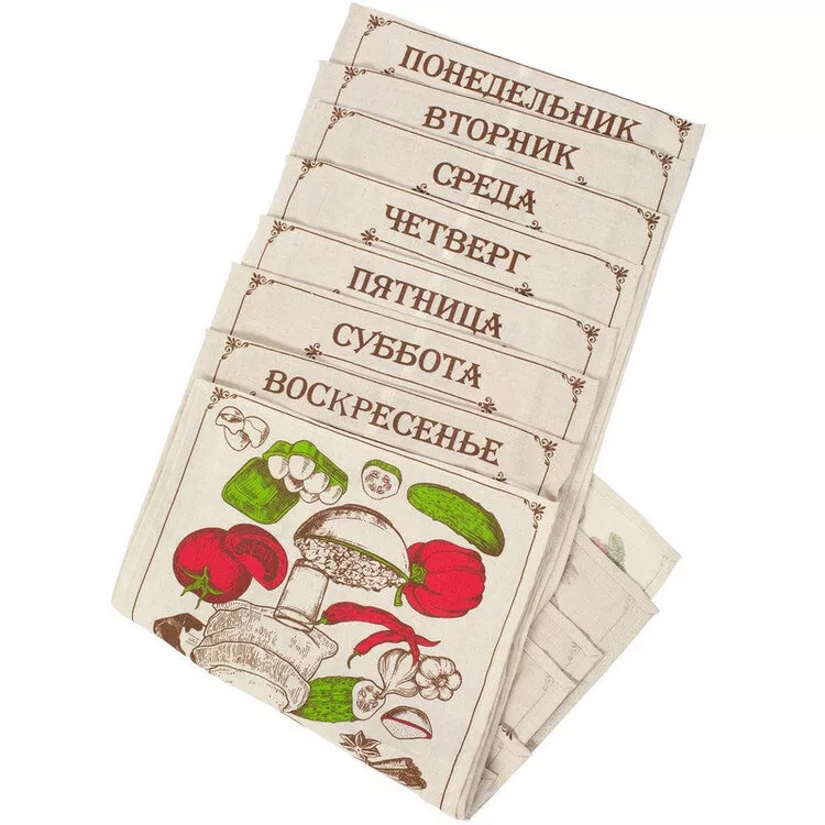 Набор кухонных полотенец "Рецепты недели" 8шт. 34х61см
