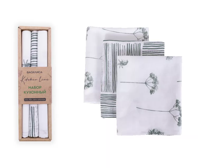 Набор кухонных полотенец "Сканди.Веточки" 3шт. 50х70см, цв.зеленый