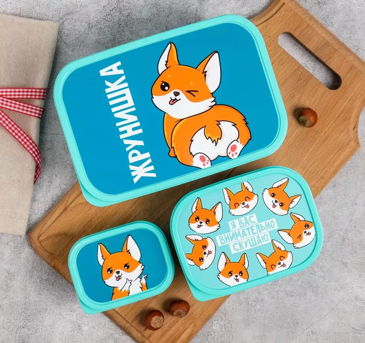 Набор ланч-боксов "Жрунишка" пластик 1,2л, 0,5л, 0,15л прям.