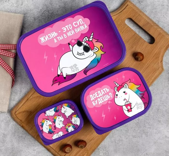 Набор ланч-боксов "Злой единорог" пластик 1,2л, 0,5л, 0,15л прям.