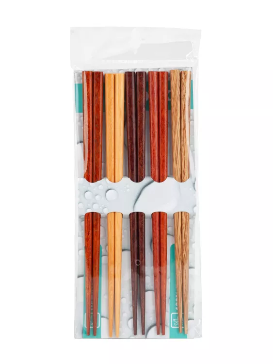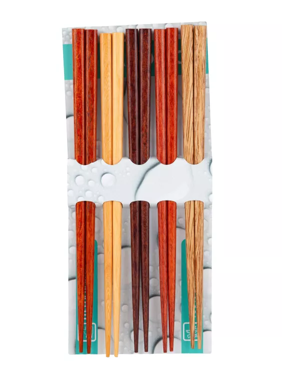 Набор китайских палочек из дерева включает в себя 5 пар, каждая из которых отличается по цвету, добавляя яркости и индивидуальности каждому приему пищи. Эти многоразовые столовые приборы идеально подходят для суши и роллов, а также для других блюд азиатск...
