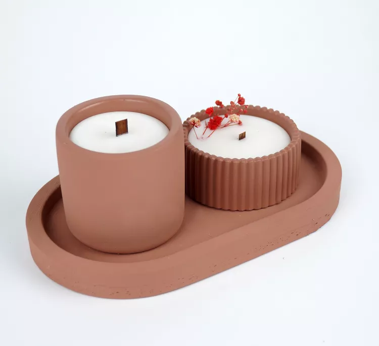 Набор подарочный "Теплота": поднос, свечи, цв.коричневый