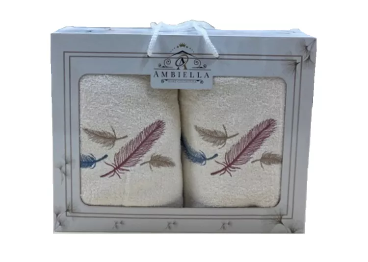 Набор полотенец "Перо" 2шт, 50х90см,70х140см, цв.кремовый