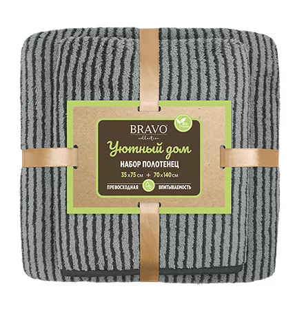 Набор полотенец "Уютный дом" 35х75см, 70х140см цв.серый пл.300